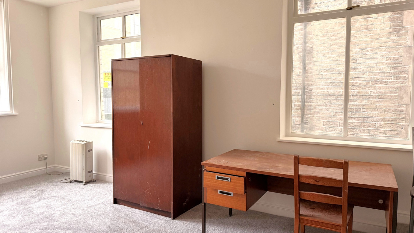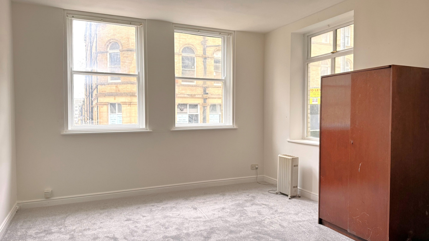 EnquiryA well presented large studio apartment with new carpets and newly decorated in Bradford City Centre offering excellent transport links including a 5 minute walk to Forster Train Station. The property is also situated close to many local amenities including the new Broadway Shopping Centre and both Rawson and Kirkgate Markets. This studio briefly comprises of a modern and generous sized kitchen living area which includes free standing oven, under the counter fridge, and ample storage space and the living/ bedroom space is a very generous size with large windows to let ample amounts of natural light in. The bathroom is a white suite with W.C, basin and a shower.
