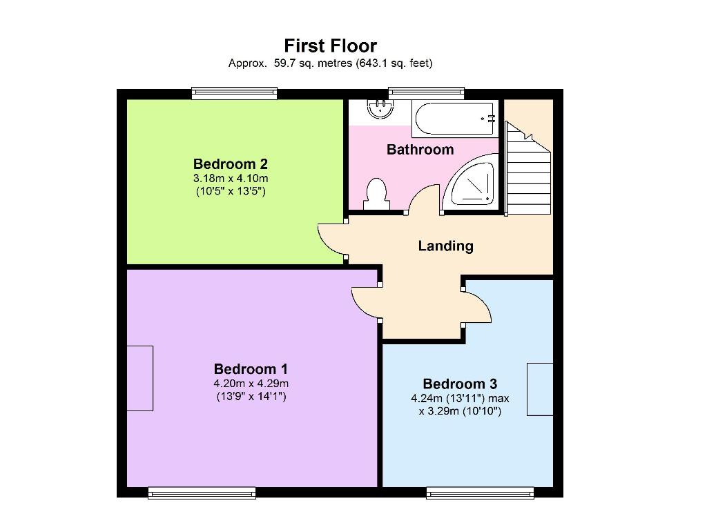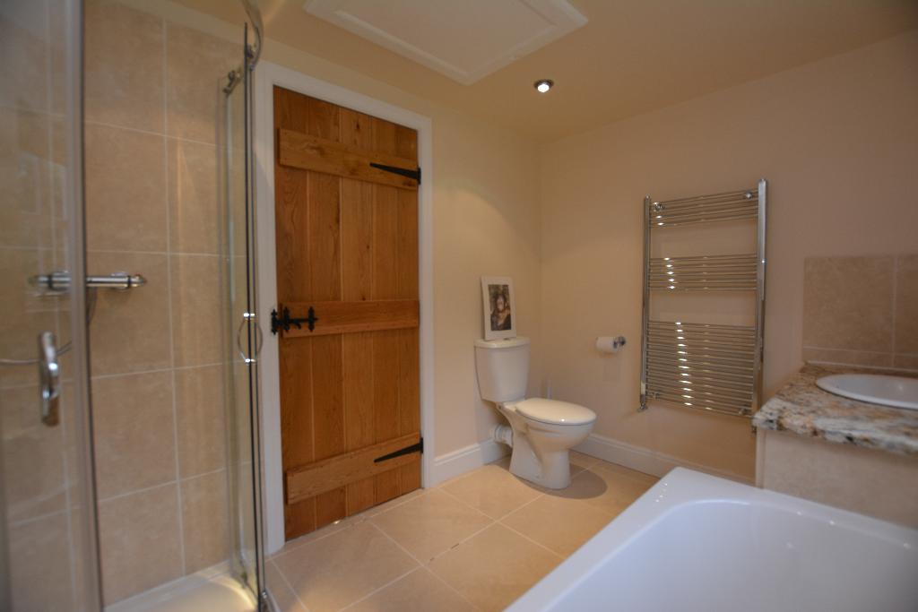 Three large Double Bedrooms on the first floor, two of the bedrooms boasting wooden beams and one with a character cast iron fireplace. Contemporary, partially tiled Family Bathroom including a bath, corner shower, wash basin and W.C.