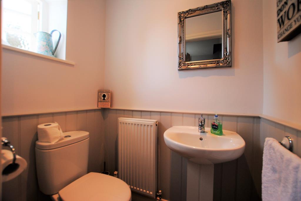 The living area spans across the ground floor and first floor (to the rear) benefiting from gas central heating and double glazing throughout. Starting with the entrance door this leads into a neat hallway with guest WC and useful under stairs storage. The ground floor to the rear houses a large study with further WC. The lounge boasts a feature fireplace and wood burning stove giving a rustic and cosy feel whilst creating a stunning focus point to the room, with access to the large conservatory spanning the entire width of the rear of the house. Fully fitted kitchen with integrated appliances including dishwasher, fridge freezer, oven, gas hob and extractor fan, access to the garage from the full fitted utility room with washing machine. Lovely family dining room with access to the large conservatory too with double French doors. From the conservatory there is a spiral staircase to the study below.